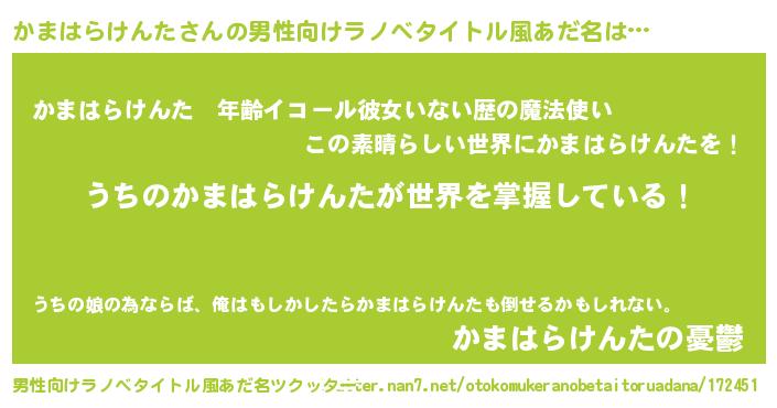 | 女子向けラノベタイトル風あだ名 | 『男装かまはらけんたの憂鬱な任務』 |