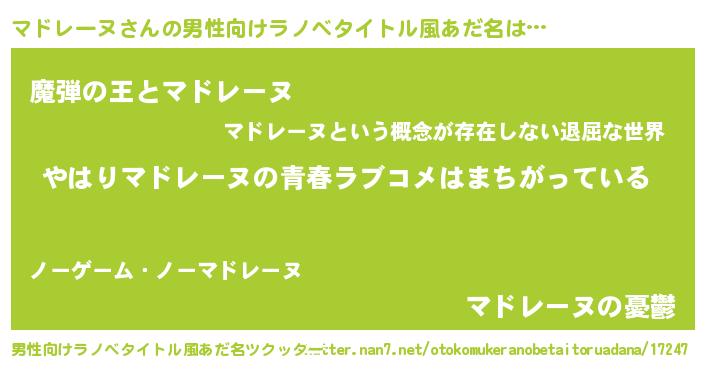 | ファンタジー風あだ名 | 『エターナルマドレーヌー』『マドフェル』 |