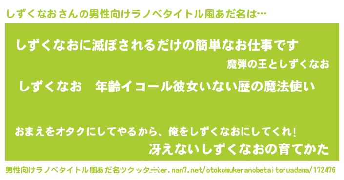 | 胡散臭い通販商品みたいなあだ名 | 『あなたにだけ特別に提供する100年もののヴィンテージワイン…その名も「しずくなお」』 |