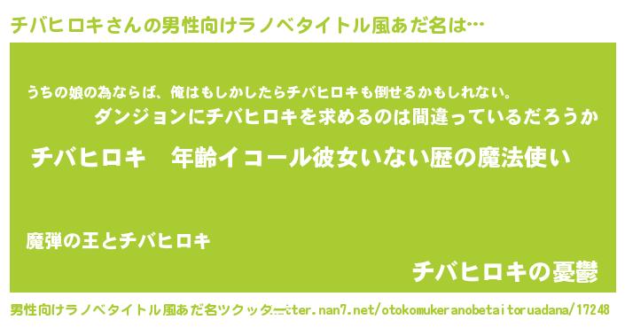 | 女子向けラノベタイトル風あだ名 | 『チバヒロキの玉の輿計画!』 |