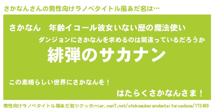 | 伝説のあだ名 | 『孤高の遊び人さかなん』 |