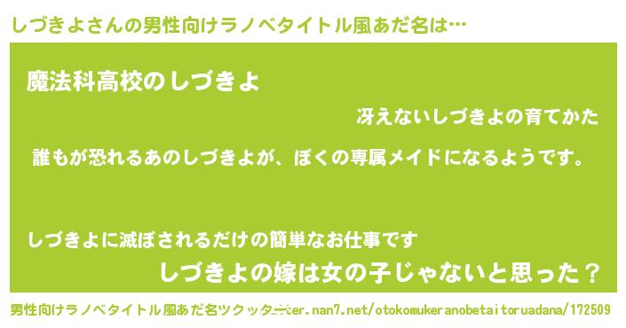 | 女子向けラノベタイトル風あだ名 | 『異世界でカフェしづきよを開店しました。』 |