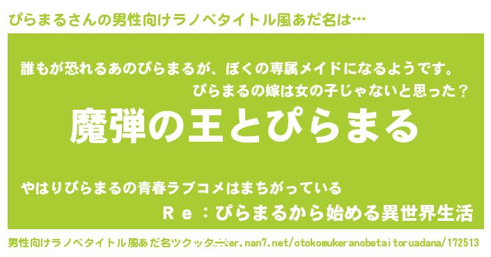 | 意味不明あだ名 | 『住所不定無職ぴらまる(41歳)』 |