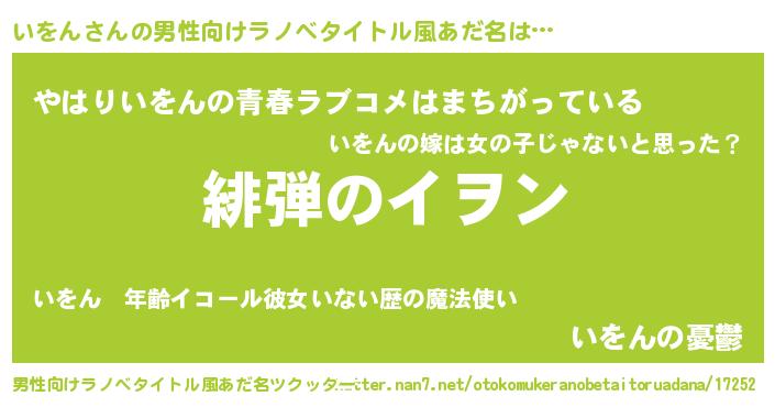 | 意味不明あだ名 | 『いをんフォーエバー』『ペロリンいをん』 |