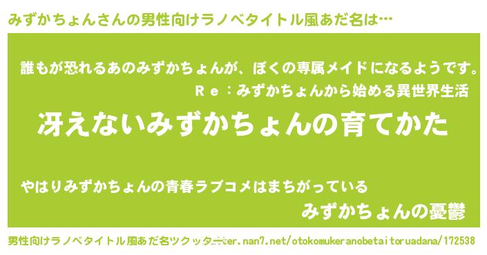 | 胡散臭い通販商品みたいなあだ名 | 『来世でも幸せになれる招き猫…その名も「みずかちょん」』 |