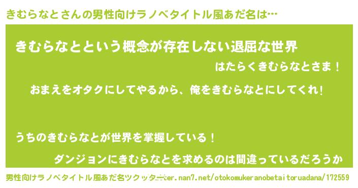 | ヘコむあだ名 | 『きむらなと(遠い目)』『きむお』 |