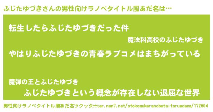 | 女子向けラノベタイトル風あだ名 | 『ふじたゆづきの雑貨屋さん』 |