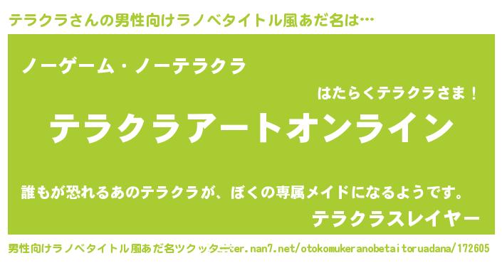 | 女子向けラノベタイトル風あだ名 | 『テラクラ姫と円卓の騎士』 |