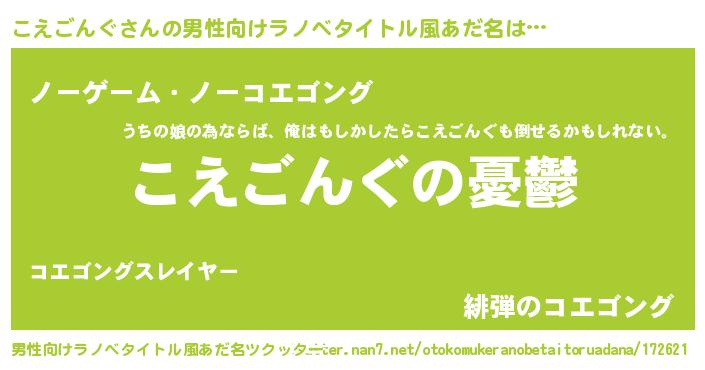 | 女子向けラノベタイトル風あだ名 | 『こえごんぐ姫と円卓の騎士』 |
