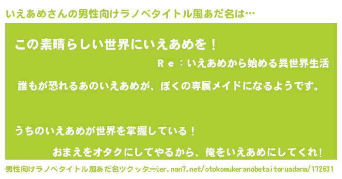 | ヘコむあだ名 | 『いえあめ(笑)』『いえを』 |