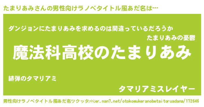 | 意味不明あだ名 | 『自称たまりあみ』『ペロリンたまりあみ』 |