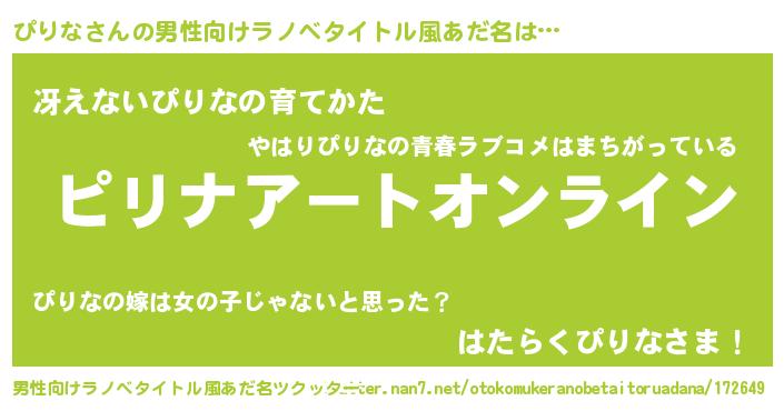 | 女子向けラノベタイトル風あだ名 | 『誰かこのぴりなを説明してください! ~契約から始まるウェディング~』 |