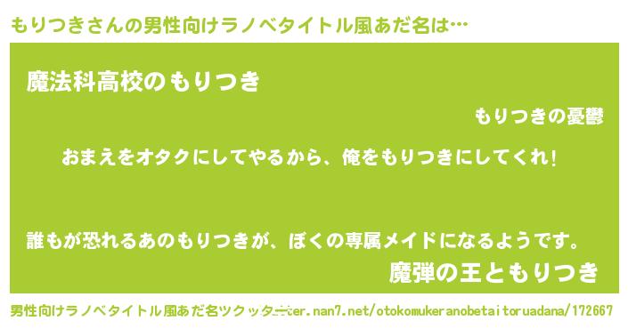 | ヘコむあだ名 | 『もりにゅー』『もりつき(笑)』 |