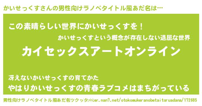 | 肩書あだ名 | 『かいせっくす御曹司』 |
