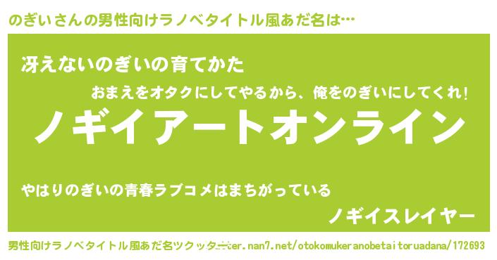 | 女子向けラノベタイトル風あだ名 | 『のぎい姫と円卓の騎士』 |