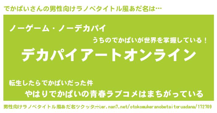 | 胡散臭い通販商品みたいなあだ名 | 『億万長者になれる霊験あらたかなお札…その名も「でかぱい」』 |