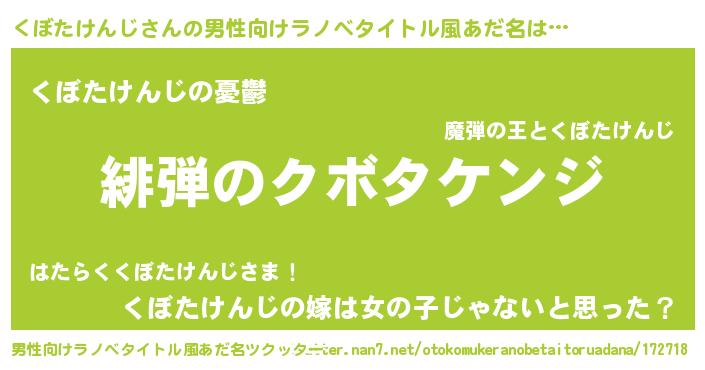 | 胡散臭い通販商品みたいなあだ名 | 『必ず成功するブレスレット…その名も「くぼたけんじ」』 |