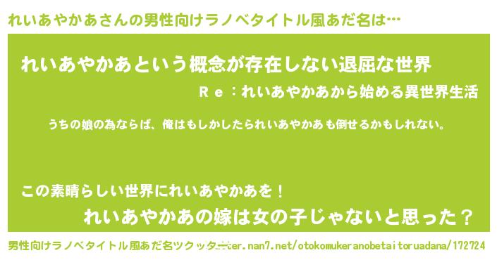 | 胡散臭い通販商品みたいなあだ名 | 『運命の人と巡り会える高級そうな絵画…その名も「れいあやかあ」』 |