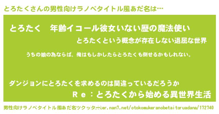 | 女子向けラノベタイトル風あだ名 | 『とろたくの婚約者』『闇のとろたく』 |