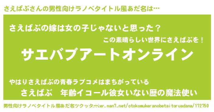| 女子向けラノベタイトル風あだ名 | 『さえばぶ姫と円卓の騎士』 |