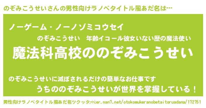 | 女子向けラノベタイトル風あだ名 | 『のぞみこうせいアンティーク』 |