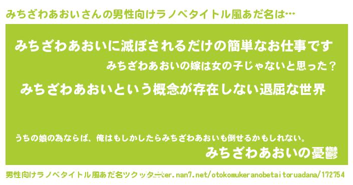 | 女子向けラノベタイトル風あだ名 | 『異世界で失敗しない100のみちざわあおい』 |