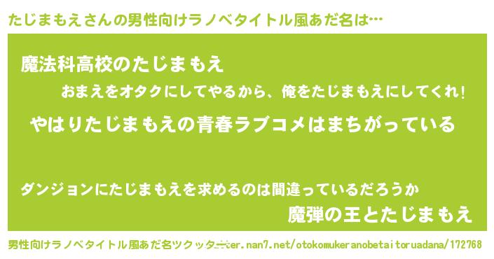 | 女子向けラノベタイトル風あだ名 | 『たじまもえの雑貨屋さん』 |