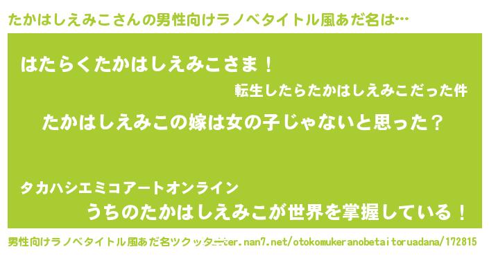 | ヒーロー風カッコイイあだ名 | 『天弓騎士タカ』『ネオタカハシエミコ』 |
