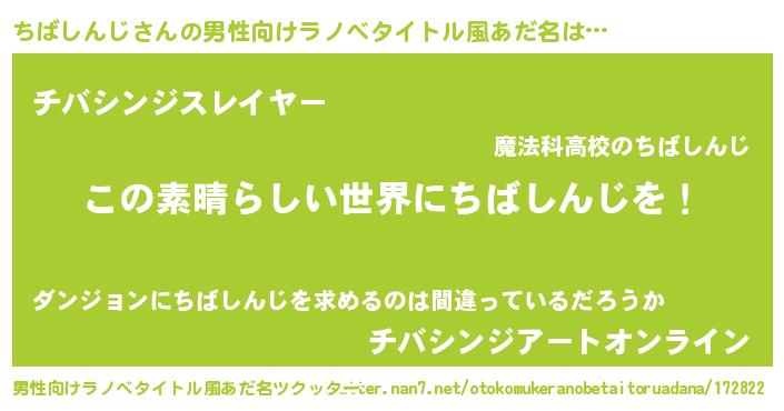 | 女子向けラノベタイトル風あだ名 | 『悪役ちばしんじに転生したようですが、知った事ではありません』 |