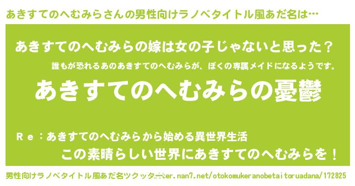 | 胡散臭い通販商品みたいなあだ名 | 『モテモテ間違いなしブレスレット…その名も「あきすてのへむみら」』 |