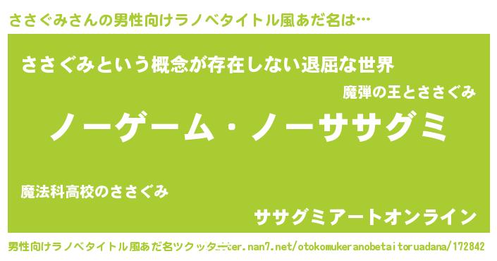 ささぐみさんの男性向けラノベタイトル風あだ名をツクッター!