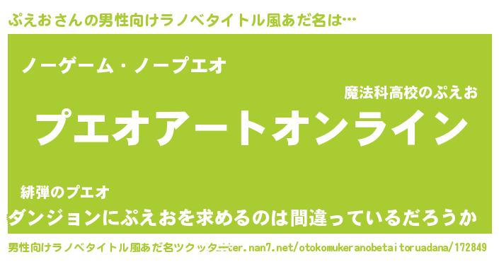 | 胡散臭い通販商品みたいなあだ名 | 『モテモテ間違いなし霊験あらたかなお札…その名も「ぷえお」』 |