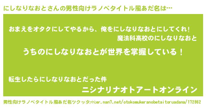 | ヘコむあだ名 | 『にしにー』『にしなりなおと(震え声)』 |