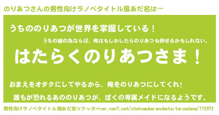 | 2chまとめサイト | サイト名『ニューのりあつ速報』 |