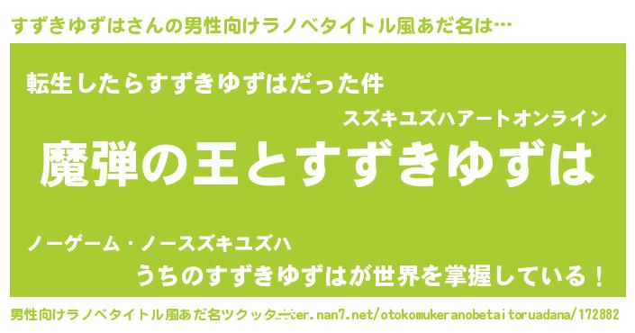 | 女子向けラノベタイトル風あだ名 | 『乙女ゲームの破滅フラグしかない悪役すずきゆずはに転生してしまった…』 |