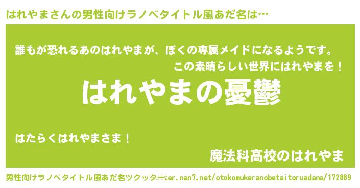 | 胡散臭い通販商品みたいなあだ名 | 『モテモテ間違いなし霊験あらたかなお札…その名も「はれやま」』 |