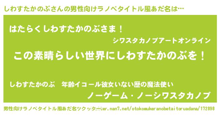 | 女子向けラノベタイトル風あだ名 | 『乙女ゲームの破滅フラグしかない悪役しわすたかのぶに転生してしまった…』 |