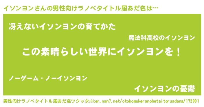 | 女子向けラノベタイトル風あだ名 | 『悪役イソンヨンに転生したようですが、知った事ではありません』 |