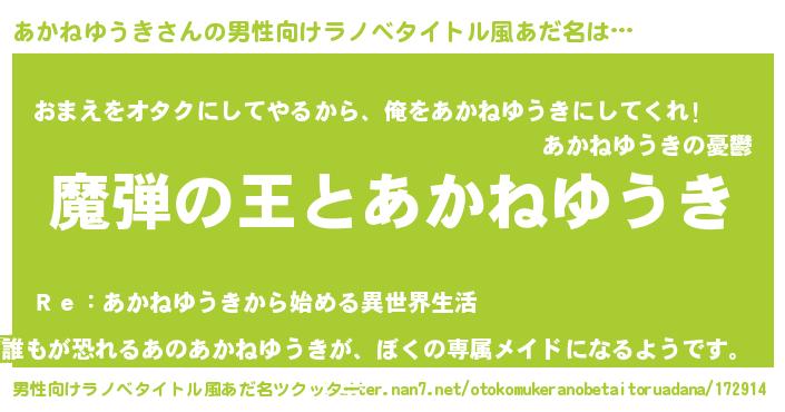 | ヘコむあだ名 | 『あかねゆうき(爆)』『あかにー』 |