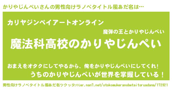 | 女子向けラノベタイトル風あだ名 | 『かりやじんぺいアンティーク』 |