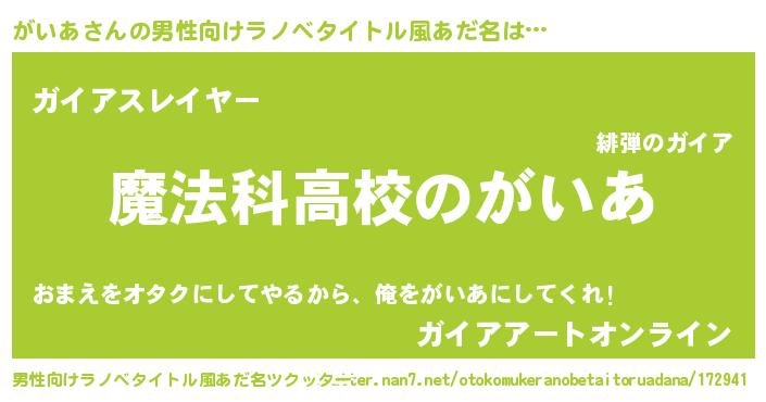 | 意味不明あだ名 | 『自称がいあ』『めかぶ科がいあ属』 |