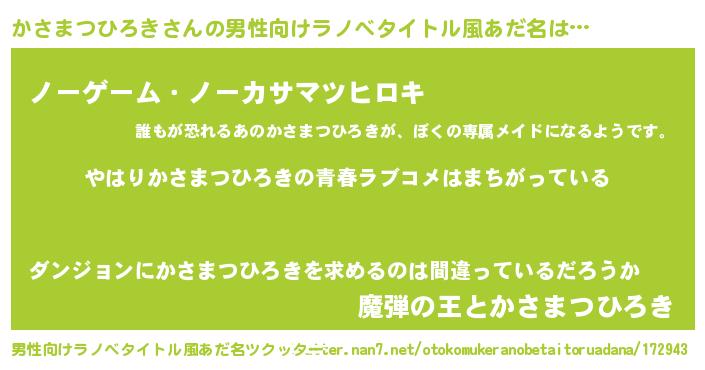 | 女子向けラノベタイトル風あだ名 | 『かさまつひろきの雑貨屋さん』 |