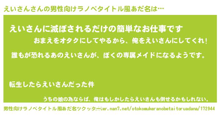 | 女子向けラノベタイトル風あだ名 | 『えいさんの契約王妃』『えいさん恋絵巻』 |