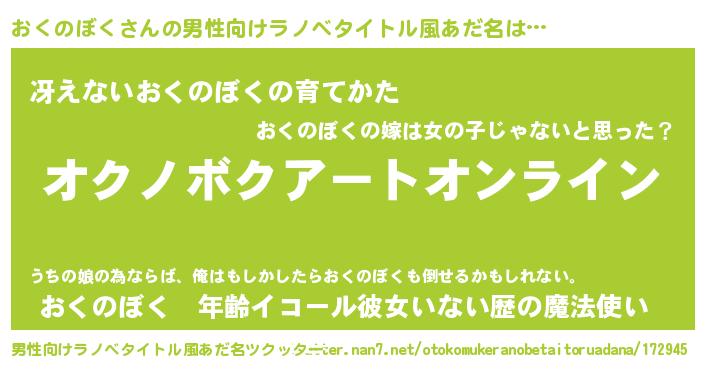 | 胡散臭い通販商品みたいなあだ名 | 『億万長者になれる霊験あらたかなお札…その名も「おくのぼく」』 |