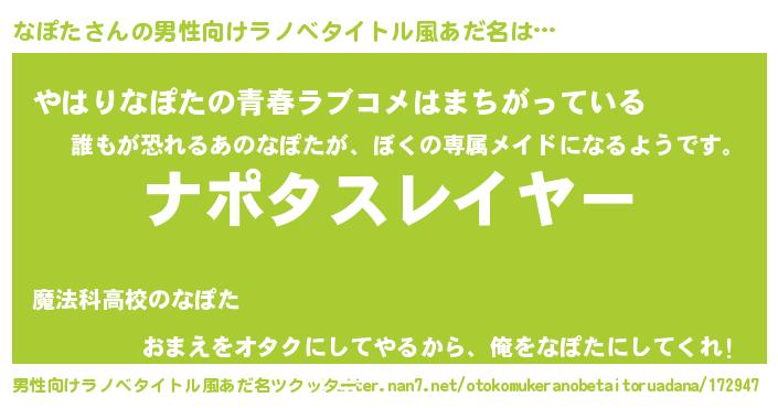 | ヒーロー風カッコイイあだ名 | 『ウルトラなぽたマン』『ネオナポタ』 |