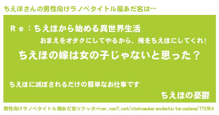 | 女子向けラノベタイトル風あだ名 | 『ちえほ様がみてる』『闇のちえほ』 |