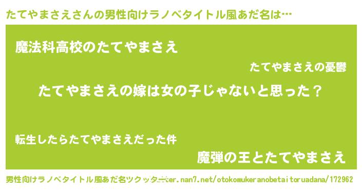 | 女子向けラノベタイトル風あだ名 | 『たてやまさえの卵を拾いまして』 |