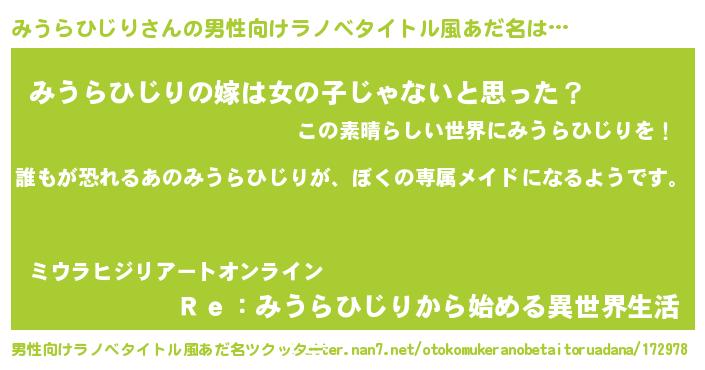 | 意味不明あだ名 | 『永久保存みうらひじり』 |