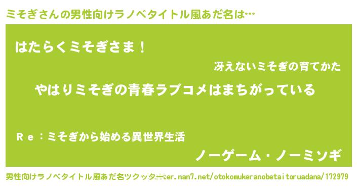 | ヒーロー風カッコイイあだ名 | 『ウルトラミそぎマン』『愛の使者ミそぎ』 |