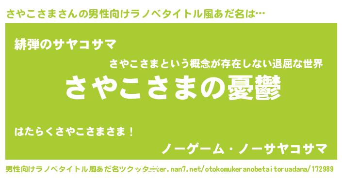 欧米人風あだ名 | 『マイケルさやこさま』 |